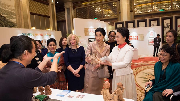 在活動中,夫人們不僅了解了中國殘疾人事業(yè)發(fā)展的總體情況,還觀看了殘疾人的才藝展示和中國殘疾人藝術(shù)團的演出。殘疾人們自強不息的精神,對美好生活的向往,讓在場所有人深受感動。夫人們還與殘疾人親切交流互動,贊嘆連連。