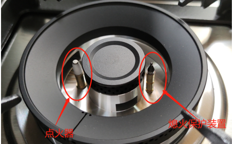 5.選擇有熄火保護裝置的灶具。對灶具有無熄火保護裝置的鑒別:熄火保護裝置一般為鋼質(zhì)感應(yīng)針,一般安裝在靠近小火蓋火焰的位置,與脈沖點火器(白色)隔火蓋相對。