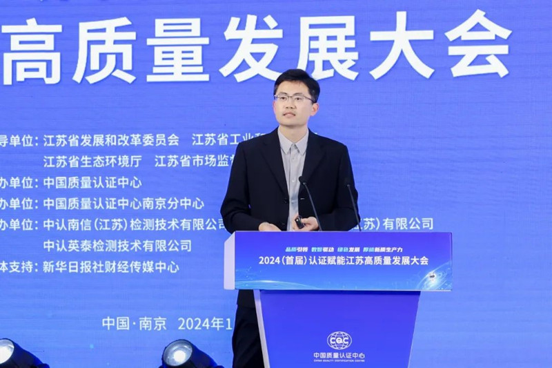 11月12日,由中國質量認證中心主辦的2024(首屆)認證賦能江蘇高質量發展大會在南京成功舉辦。會議得到江蘇省發展和改革委員會、江蘇省工業和信息化廳、江蘇省生態環境廳、江蘇省市場監督管理局指導。