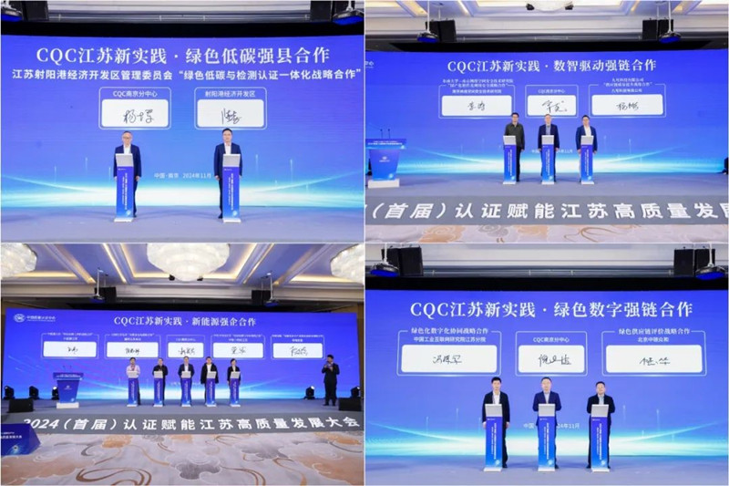 劉江在致辭中表示,中國質量認證中心緊跟江蘇省邁向制造強省步伐,聚焦江蘇省“1650”產業體系,充分發揮自身技術優勢為江蘇省產業強鏈補鏈延鏈行動、數字經濟核心產業加速行動,以及推進江蘇省經濟社會發展的全面綠色化、低碳化提供了重要支撐。未來,在江蘇省經濟發展創新引領加速、質量全面提升新征程上,中國質量認證中心將繼續踐行使命責任,發揮質量領域技術優勢,為譜寫“強富美高”新江蘇現代化建設新篇章作出更多貢獻。